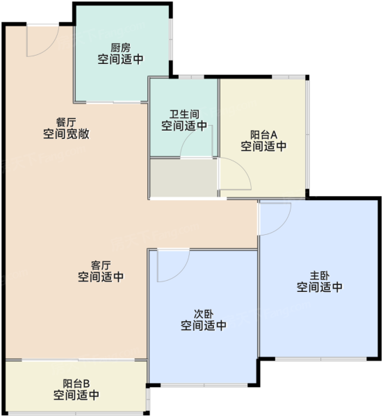 各个空间户型方正,方便室内家具布置;全明通透户型,居住舒适度较高,整个空间采...
