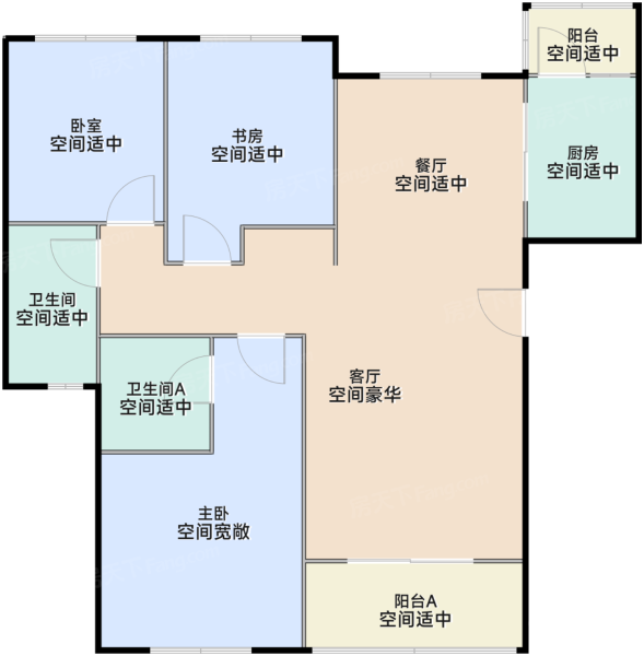 各个空间户型方正,后期空间利用率高;全明户型,各部分空间均有窗,可保证整体空...